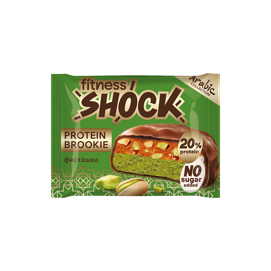 Главная / Продукты / Здоровый перекус / Протеиновое печенье глазированное Брауни "Фисташка" Brookie Arabic Collection FitnesShock
